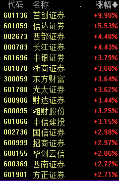 二是银行、券商、保险三大金融板块集体上涨,券商板块领涨,首创证券、信达证券等个股涨幅居前。