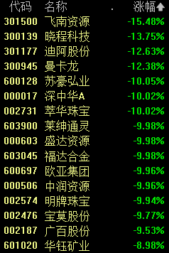 今天上午,资源股出现调整。具体看,黄金概念大跌,飞南资源、晓程科技等个股跌幅居前。金属新材料、铜铅等基本金属、小金属等板块下跌。