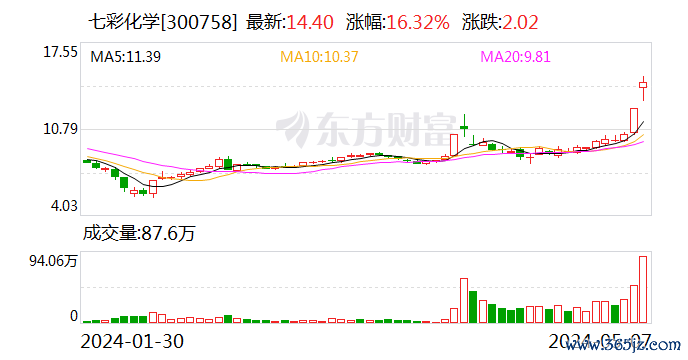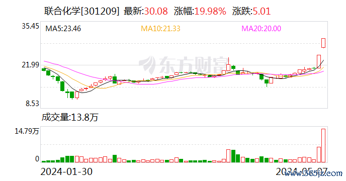 在A股市场,本周的前两个交易日,百合花(603823.SH)、联合化学(301209.SZ)已录得2天2板,建新股份(300107.SZ)、双乐股份(301036.SZ)及七彩化学(维权)(300758.SZ)2天累计涨幅也都超过20%。
